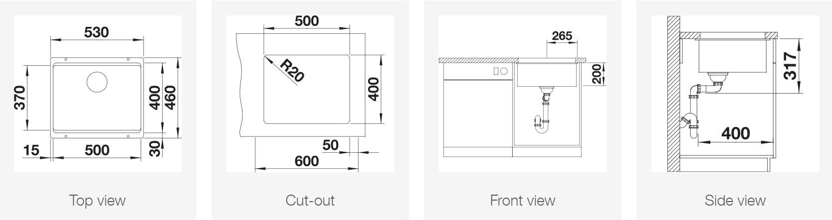 Valamu mõõdud: 530x460mm